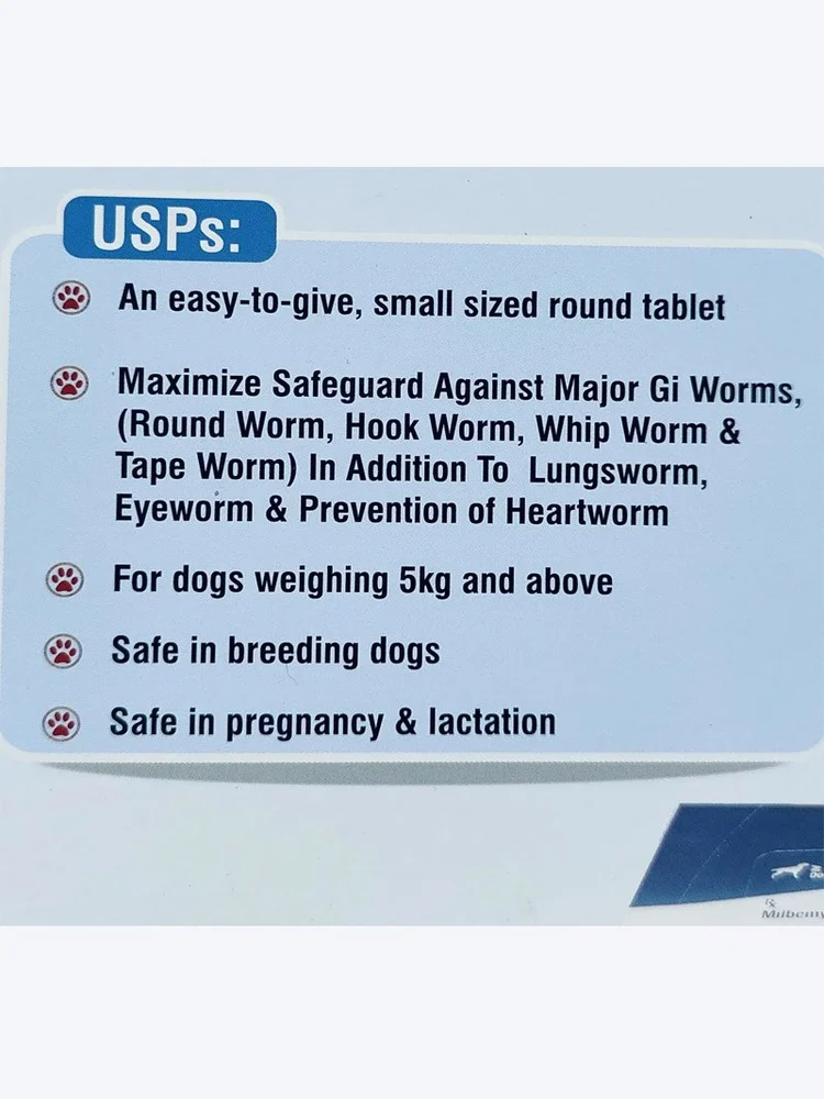 Composition: Milbemycin oxime (12.5mg) + Praziquantel (125mg)